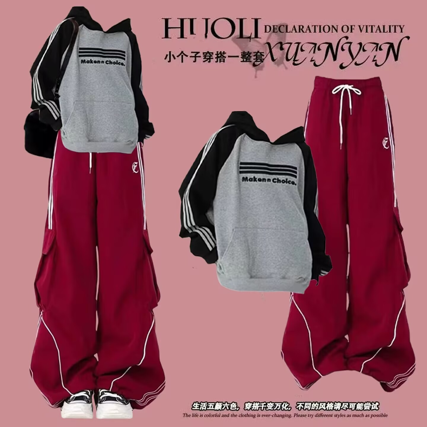 少女中大童运动套装初中高中学生时尚洋气连帽卫衣休闲裤子两件套