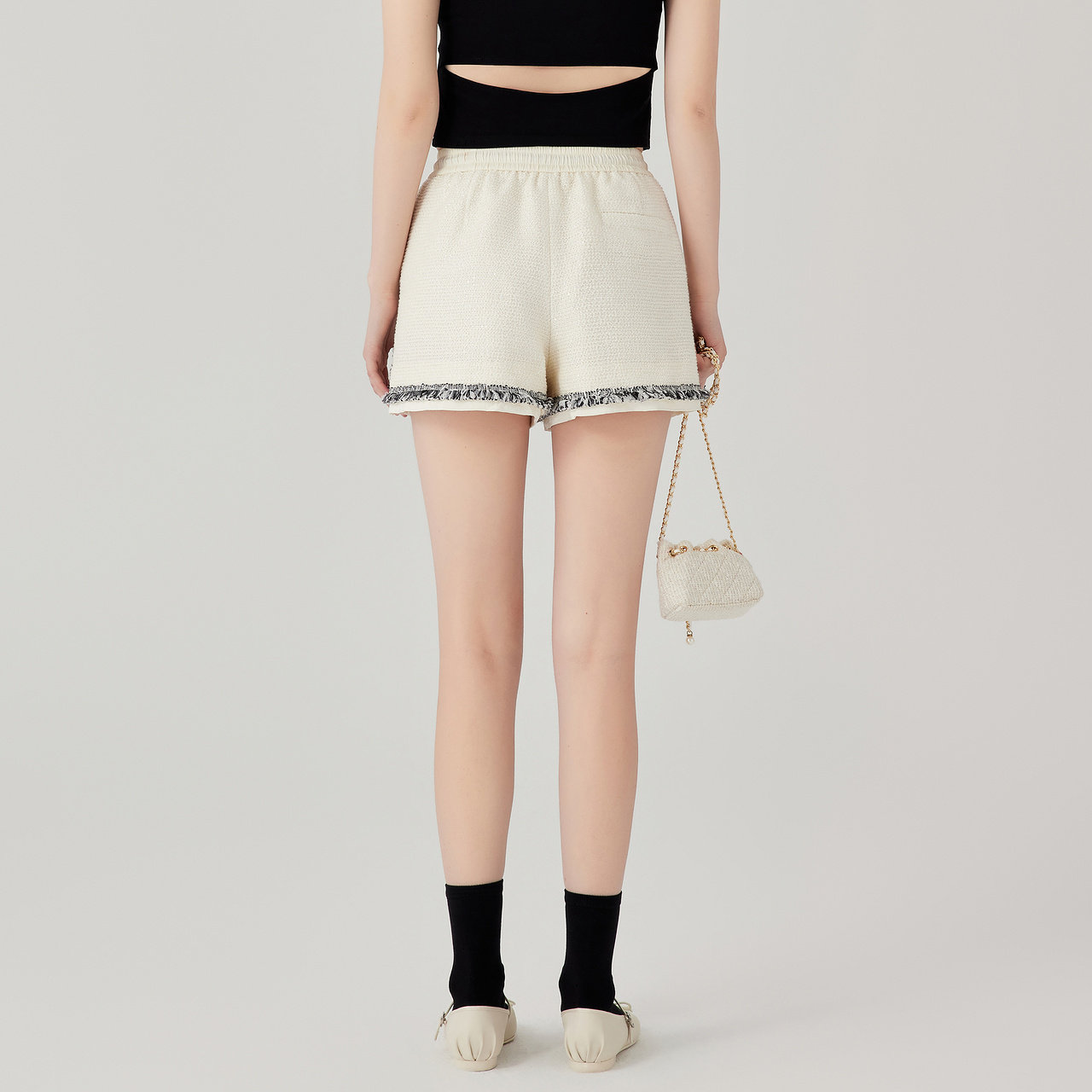 商场同款 摩萨克夏小香风休闲撞色毛边设计粗花呢短裤女