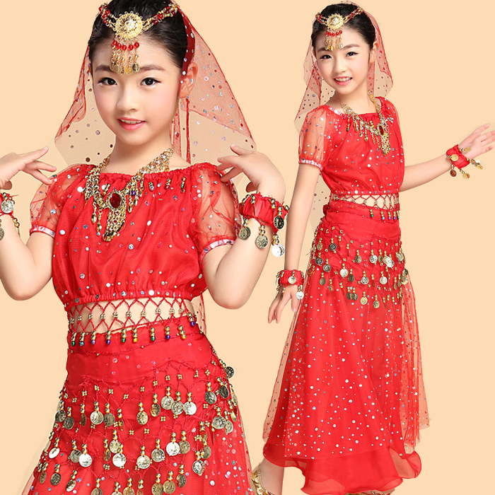 儿童印度舞表演出服套装女童肚皮舞服饰幼儿园民族舞蹈服公主长裙