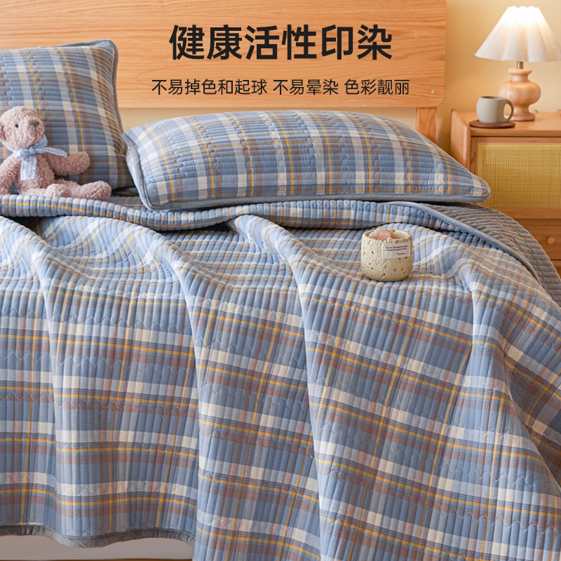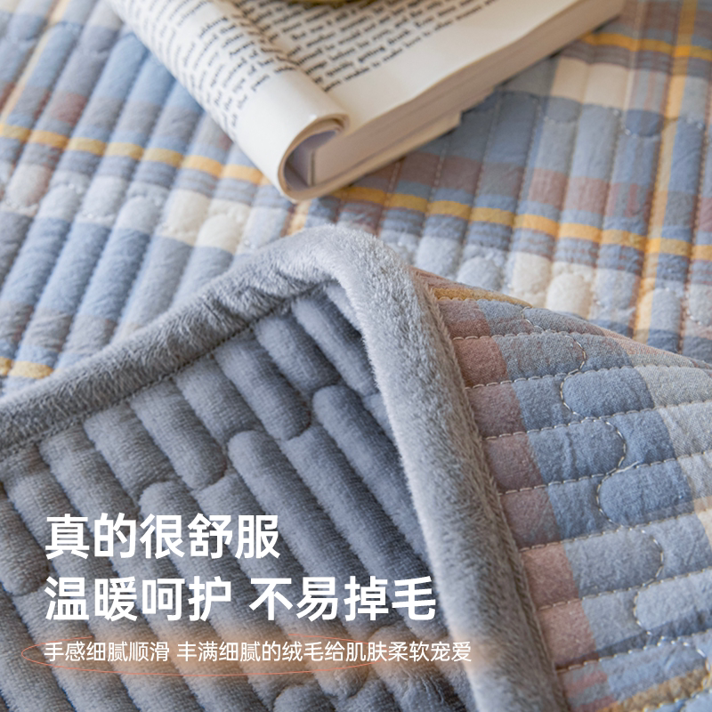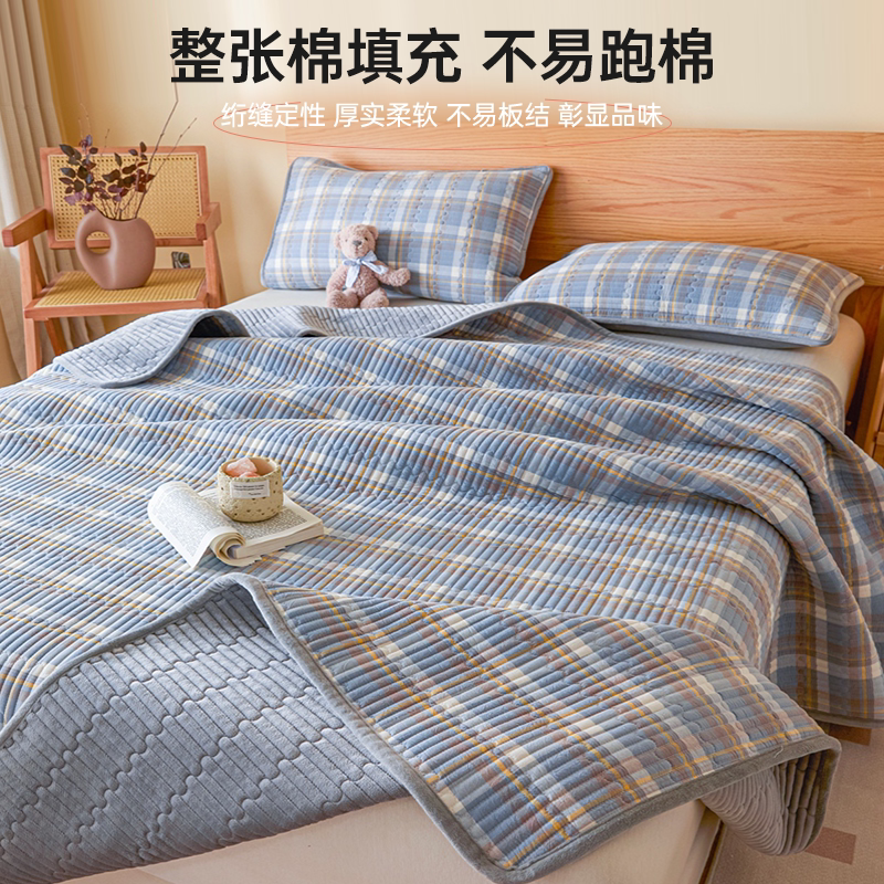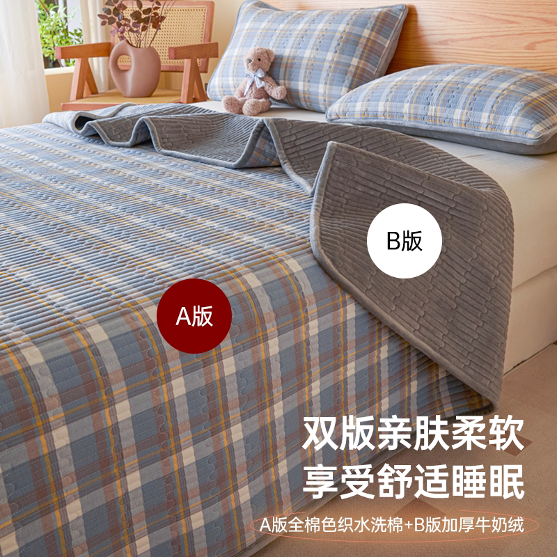 无印良品意一面绒一面纯棉床盖单件全棉牛奶绒夹棉床单三件套四季