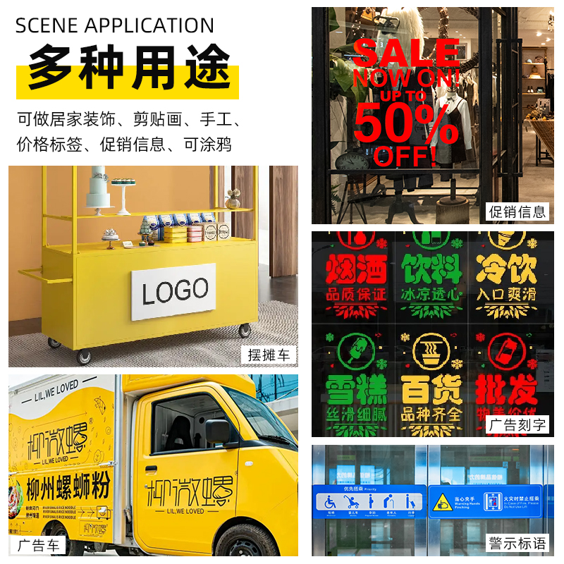 彩色不干胶广告刻字贴纸蓝色红色户外喷绘即时贴墙纸自粘防水PVC