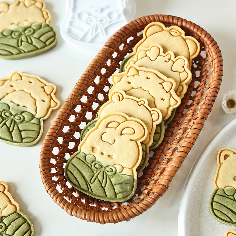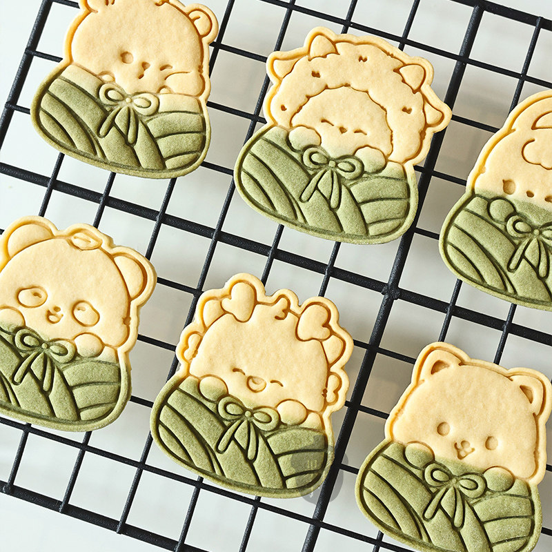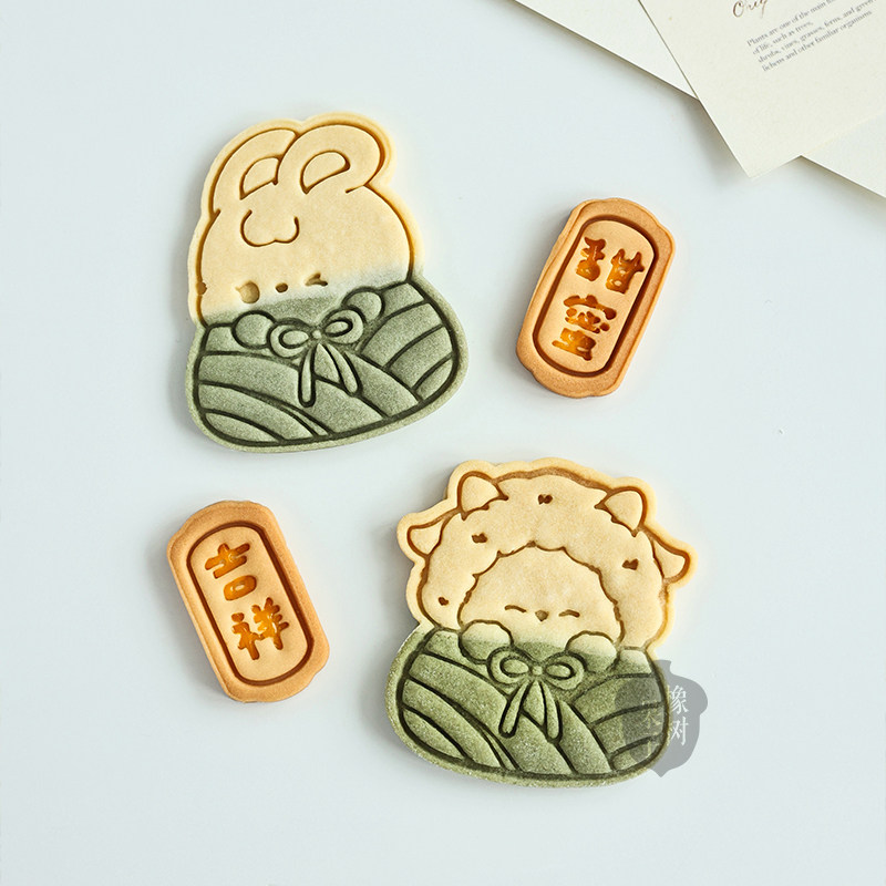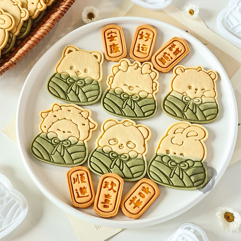 2024新款卡通小动物端午节粽子饼干模具小熊兔子狗福牌曲奇手压模