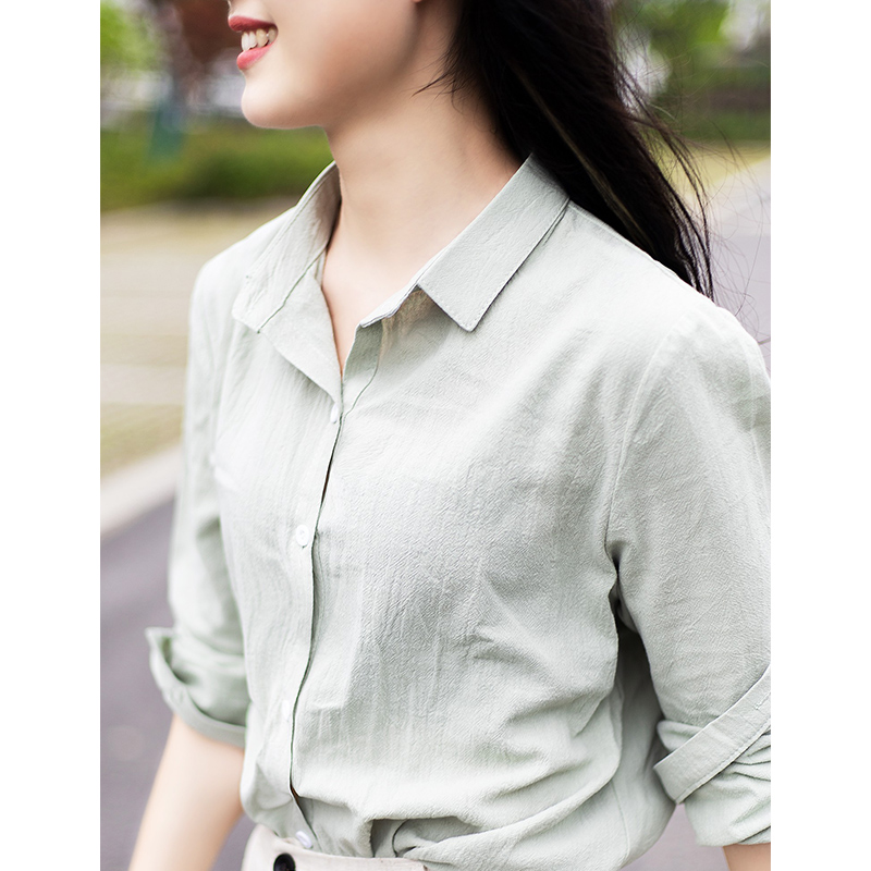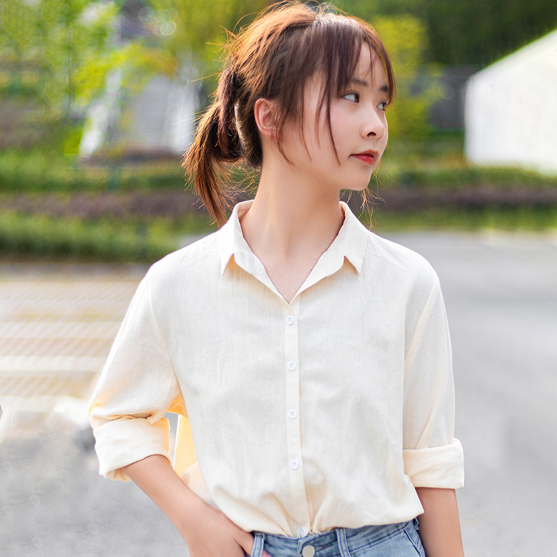 春夏新款棉麻衬衫女设计感小众长袖上衣大码宽松纯棉休闲打底衬衣