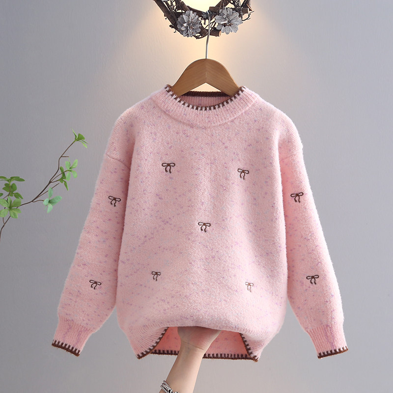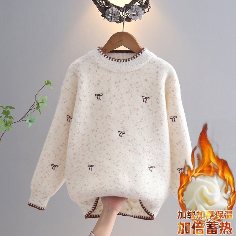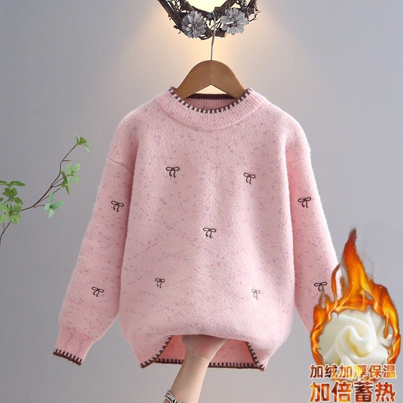 女童秋冬季毛衣2025洋气蝴蝶结加厚保暖女孩中大童韩版打底衫上衣