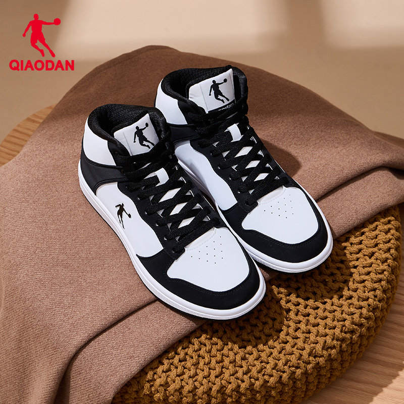 乔丹薄底板鞋女冬季新款高帮皮面黑白熊猫休闲鸳鸯鞋运动鞋平底鞋