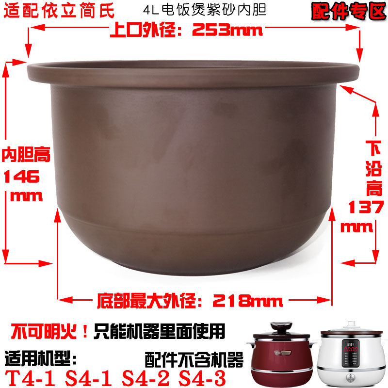 依立T4-1/T4-2紫砂电饭煲无涂层养生锅内胆陶瓷锅4L升配件