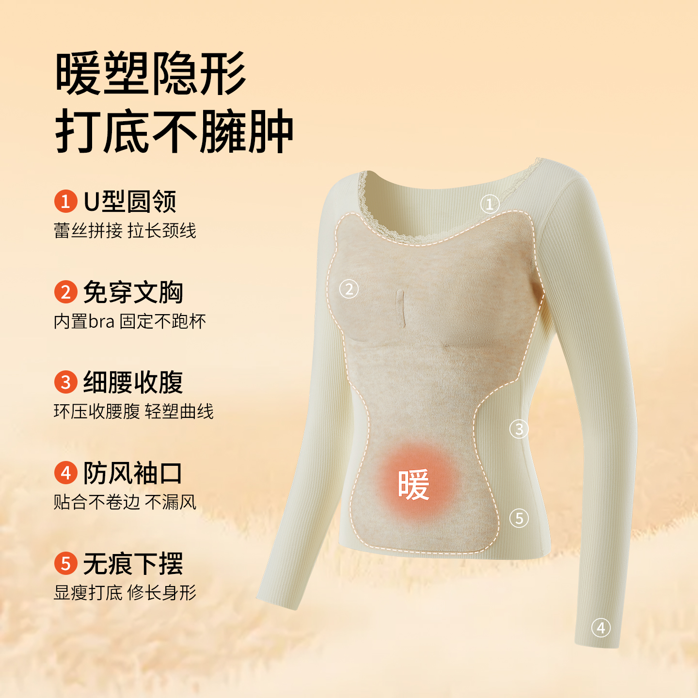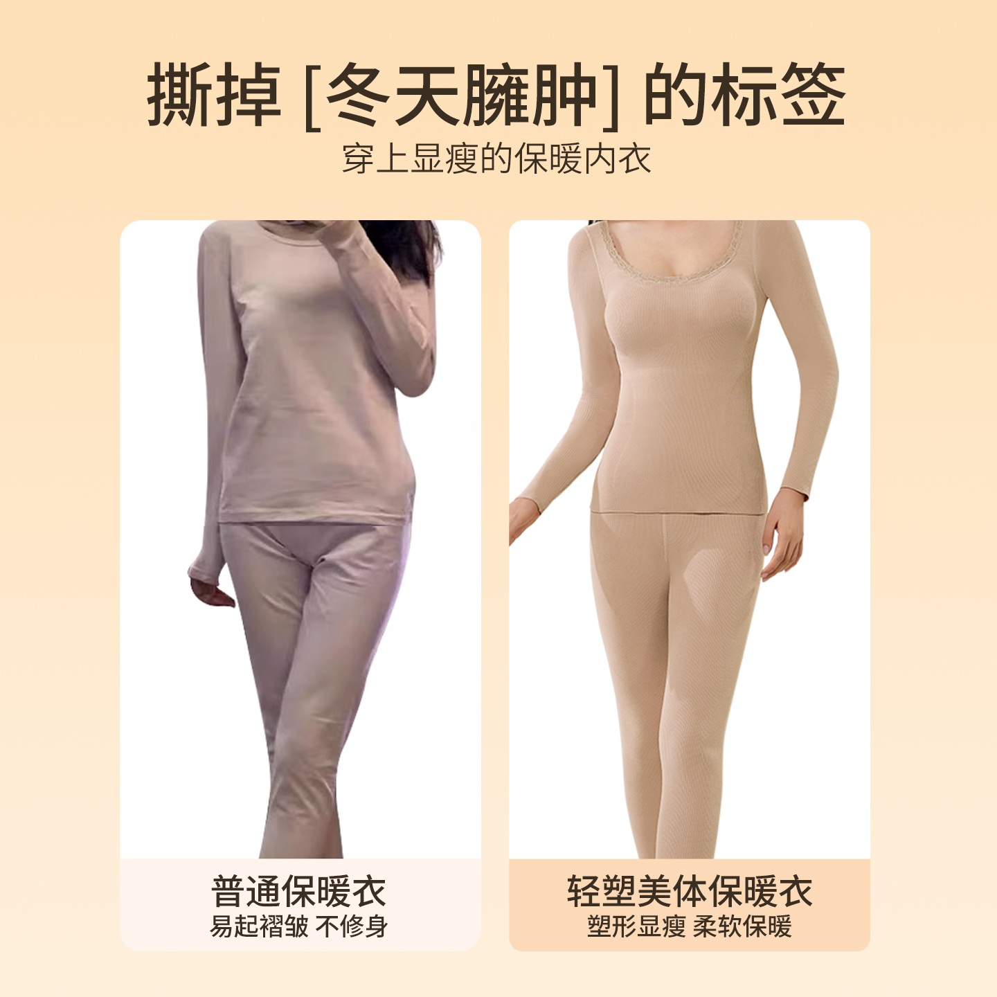 婷美秋冬免穿文胸蓄热保暖套装加绒加厚秋衣秋裤修身显瘦打底内衣