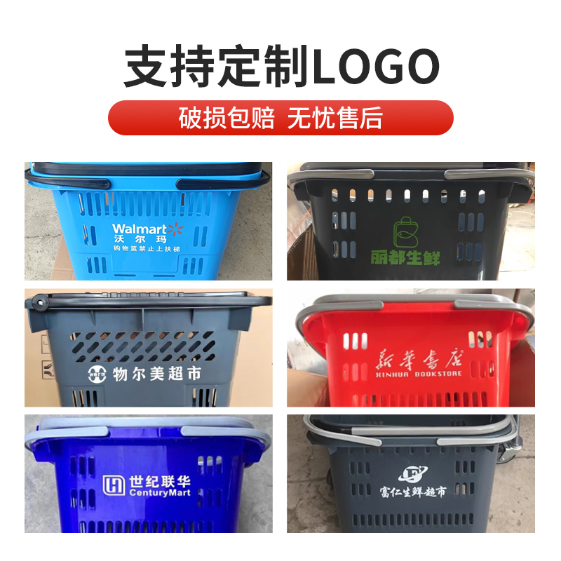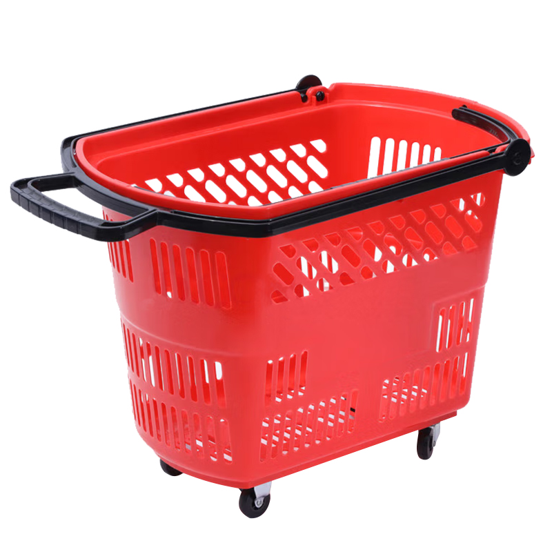 超市购物篮四轮拉杆筐小推车手拉购物筐加厚塑料篮提拉两用便利店