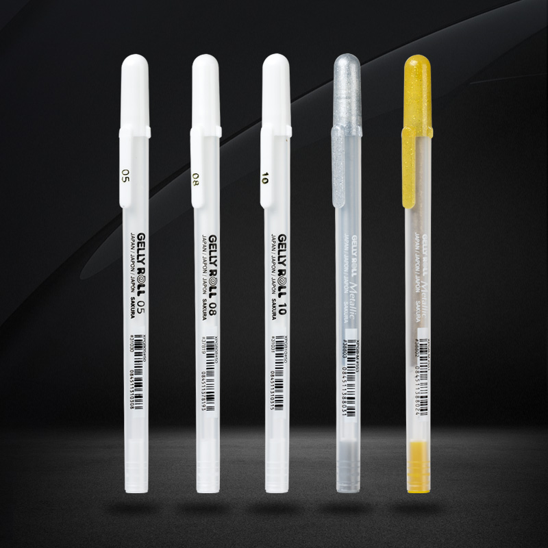 日本樱花高光笔白色笔银金色波晒笔手绘设计黑卡纸白线笔XPGB#50