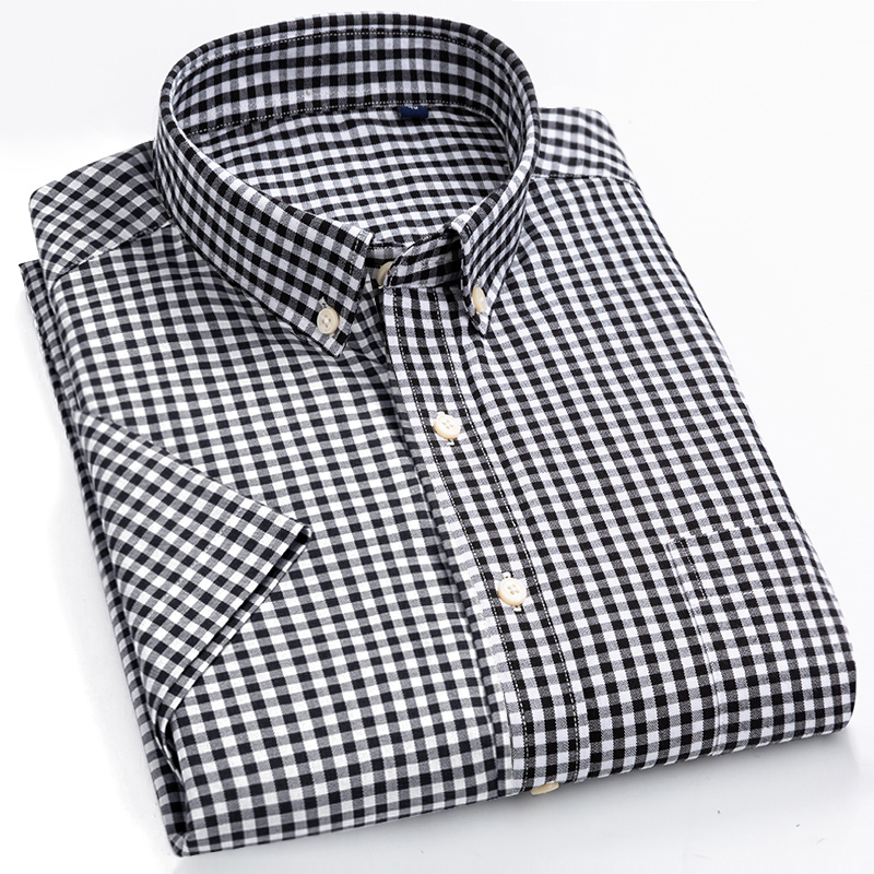 纯棉蓝白竖条纹短袖衬衫男潮日系灰黑白大直条纹衬衣宽松半袖寸衫