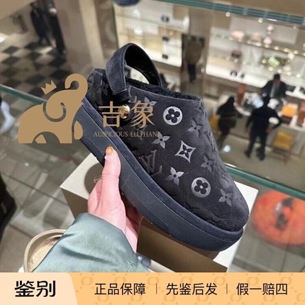 Lv路易威登2023新款女鞋黑色印花麂皮绒面厚底包头拖鞋1ACHW8