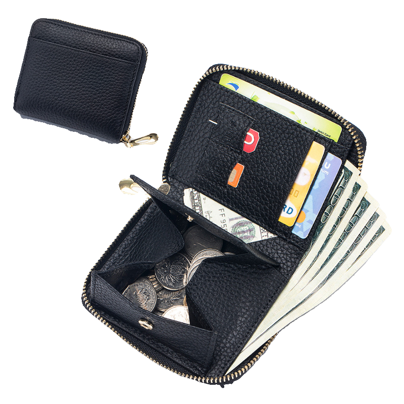 新款真皮时尚多功能短款钱包女士日式小众零钱袋卡包RFID大容量