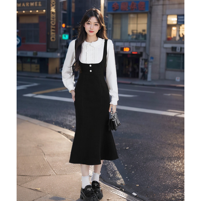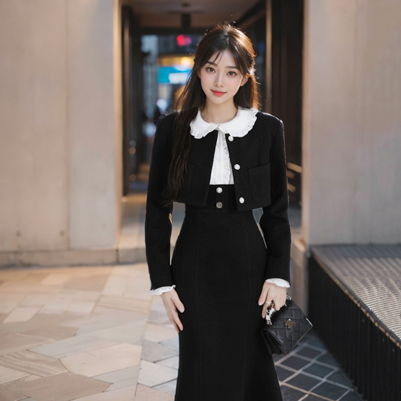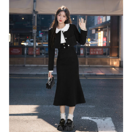 赫本序曲早秋气质名媛短外套假两件鱼尾连衣裙女2025新款洋气套装