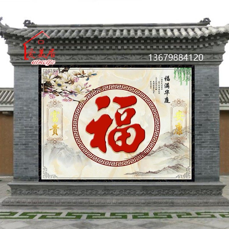 定制新中式农村庭院迎门影壁墙别墅瓷砖K壁画背景墙高温微晶大福