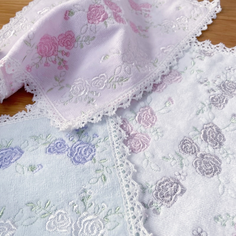 ATOC精美花卉刺绣手帕 小方巾蕾丝出口日单精致纯棉毛巾手帕25cm