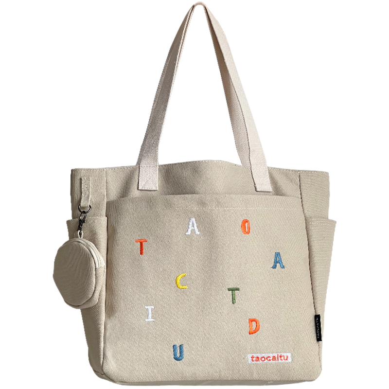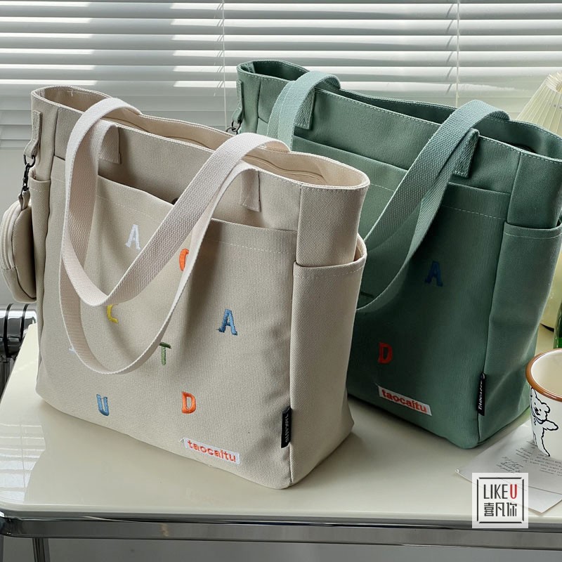 原创设计加厚刺绣字母百搭通勤帆布托特包休闲文艺学生单肩手提包