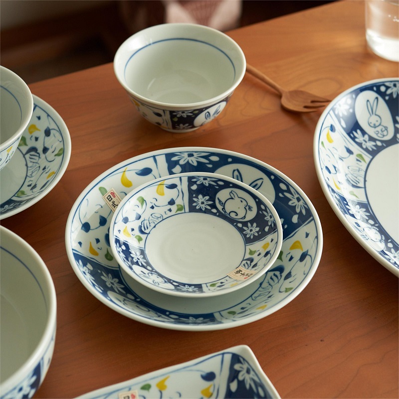 肆月日式复古陶瓷斗笠大碗釉下彩