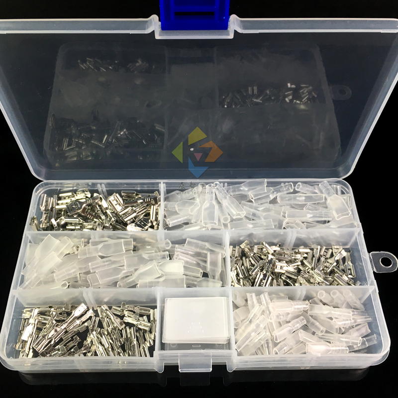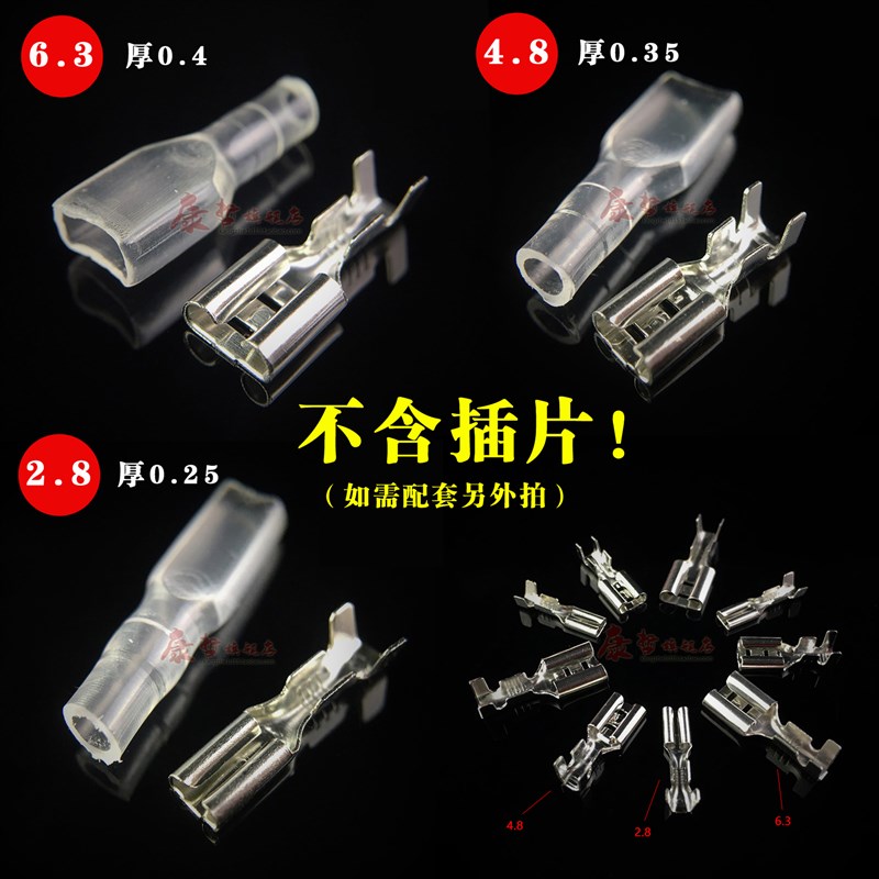盒装6.3/4.8/2.8插簧+护套各50套插拔式冷压接线端子电线连接器铜