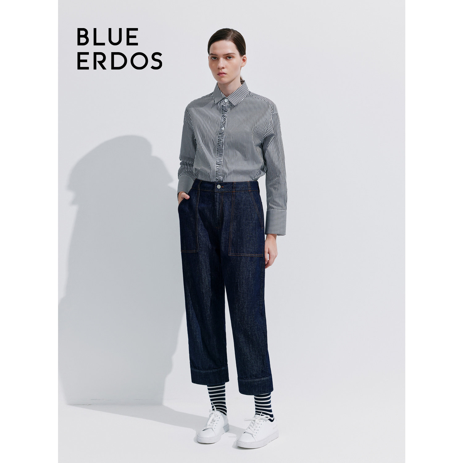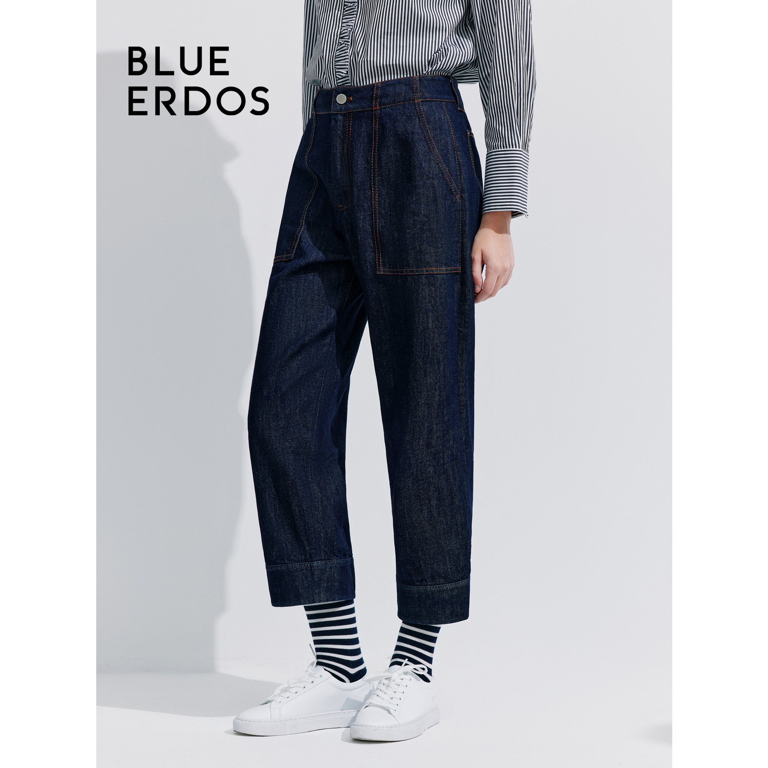 BLUE ERDOS简约百搭直筒棉麻混纺九分牛仔裤女B245M3002