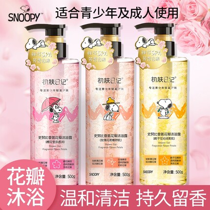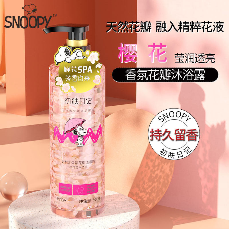 SNOOPY史努比香氛花瓣沐浴露栀子花玫瑰樱花留香补水香水沐浴乳女