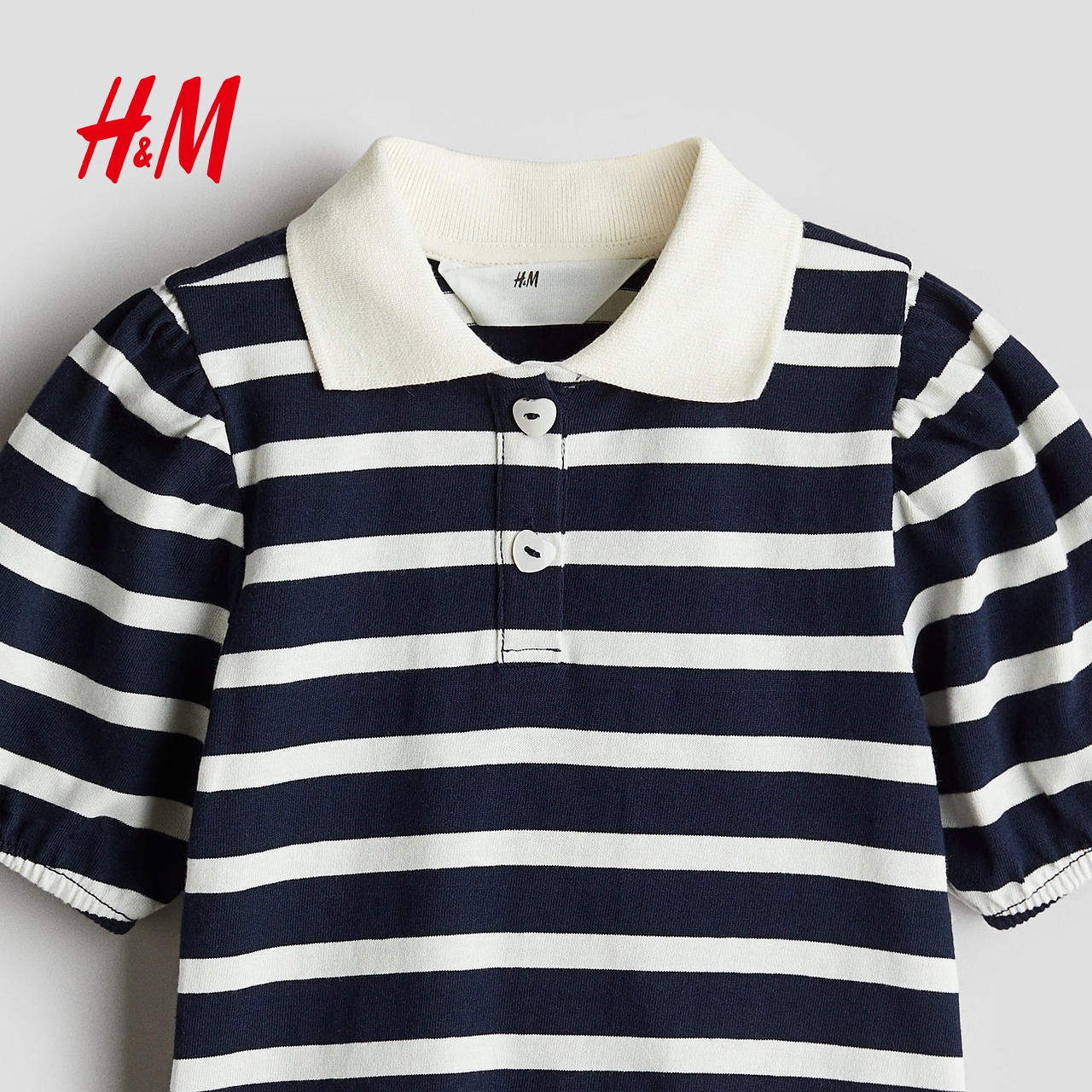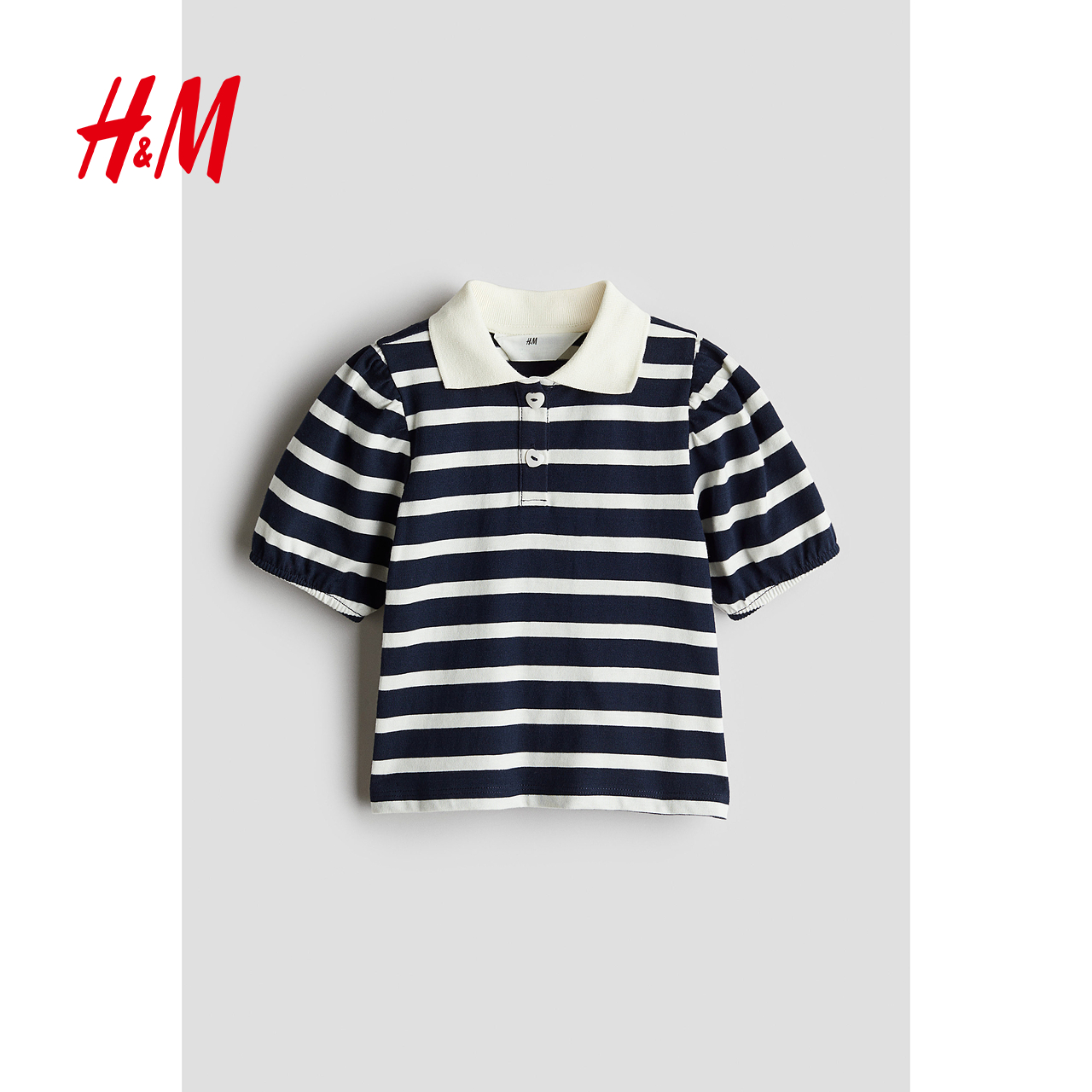 HM童装儿童女童POLO衫2025年秋新款条纹翻领泡泡短袖上衣1261317