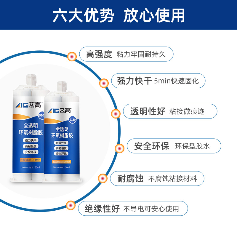 艾高9105环氧树脂全透明强力AB胶粘瓷砖金属玻璃硬塑料铝陶瓷木材铁大理石多功能粘的牢快干密封防水万能胶水
