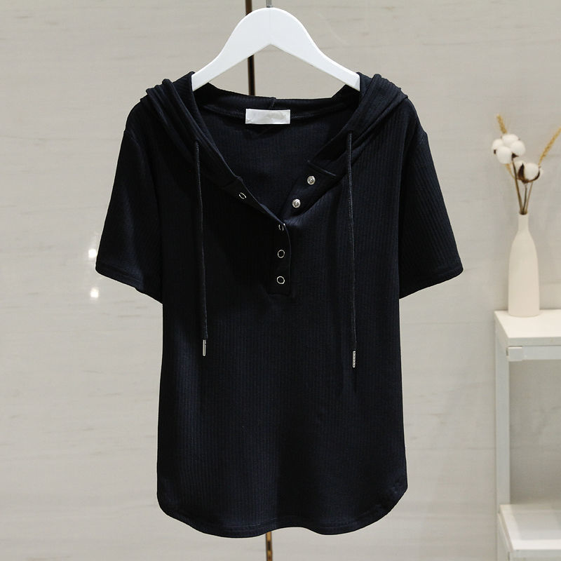 白色抽绳连帽t恤女短袖2025夏季新款时尚宽松显瘦百搭体恤打底衫