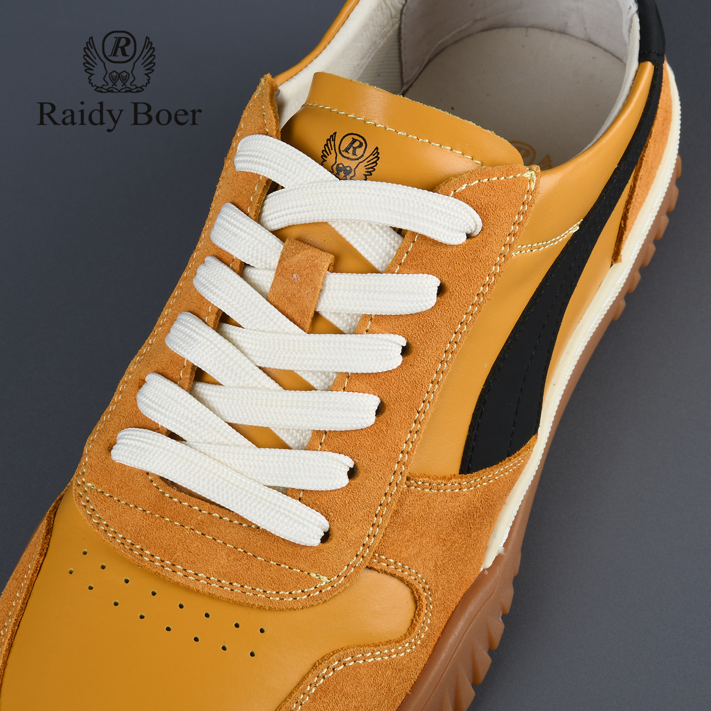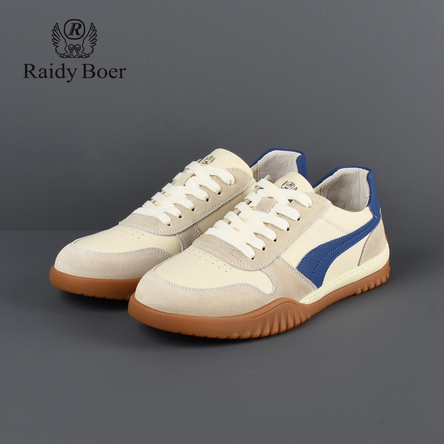 雷迪波尔男鞋牛皮革德训鞋2025夏季新款拼色轻运动百搭休闲板鞋男
