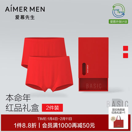 【礼盒两件包】爱慕先生本命年红品内裤系列男士平角内裤NS23C962