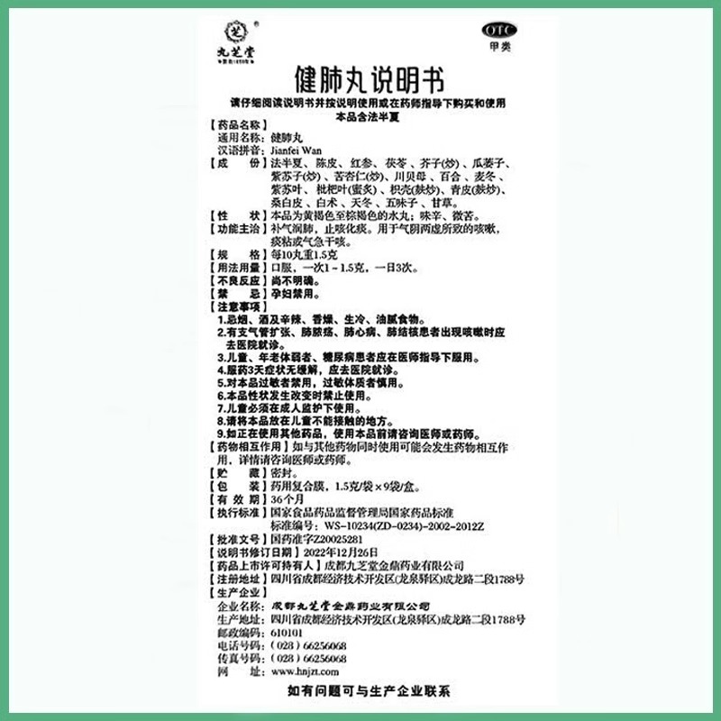 九芝堂健肺丸止咳化痰补气润肺阴感冒干咳嗽喘清肺补肺养肺中药丸