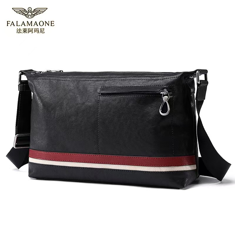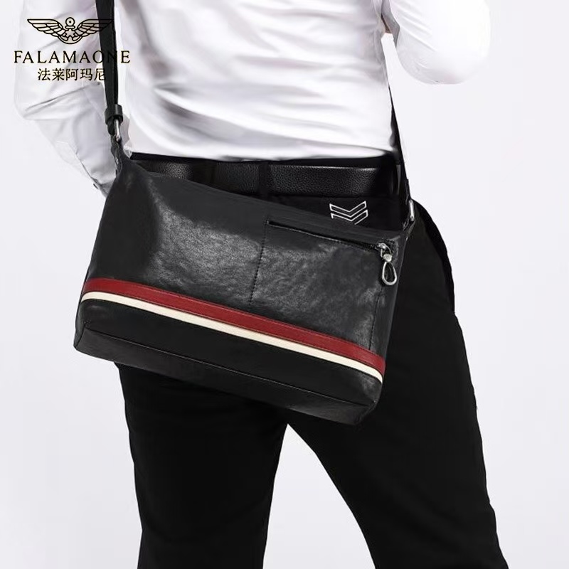法莱阿玛尼黑色单肩包男士真皮包休闲时尚通勤小背包百搭牛皮包包