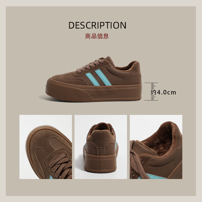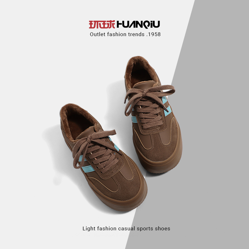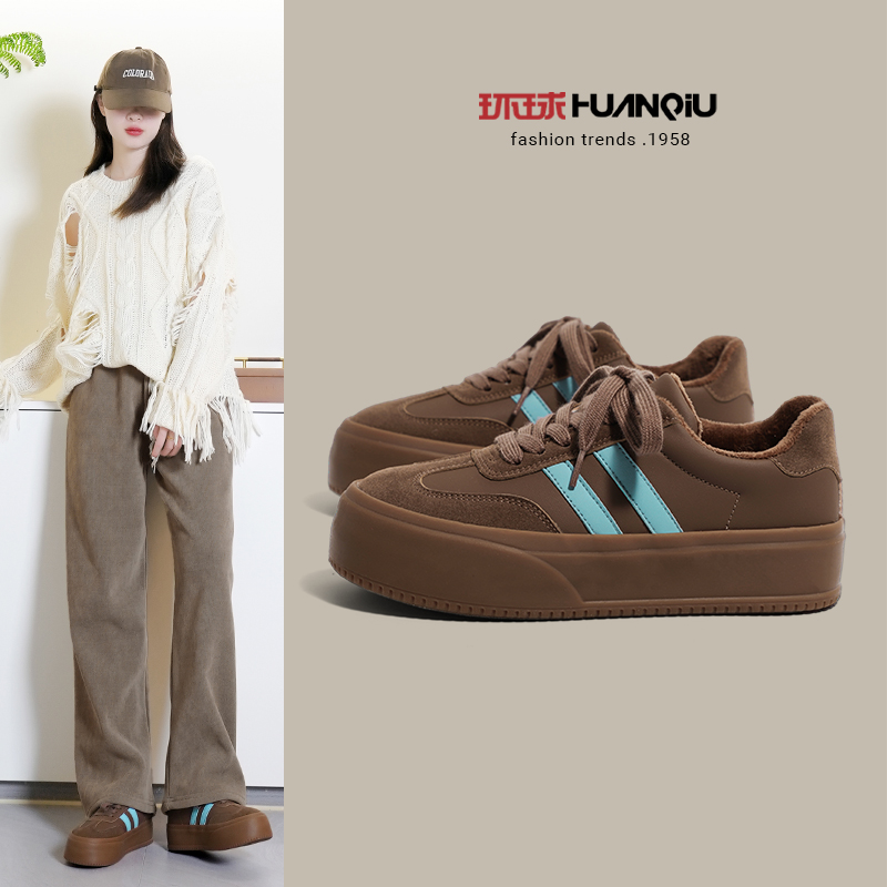 环球加绒保暖德训鞋女2025夏季新款鞋子女复古厚底时尚休闲鞋板鞋