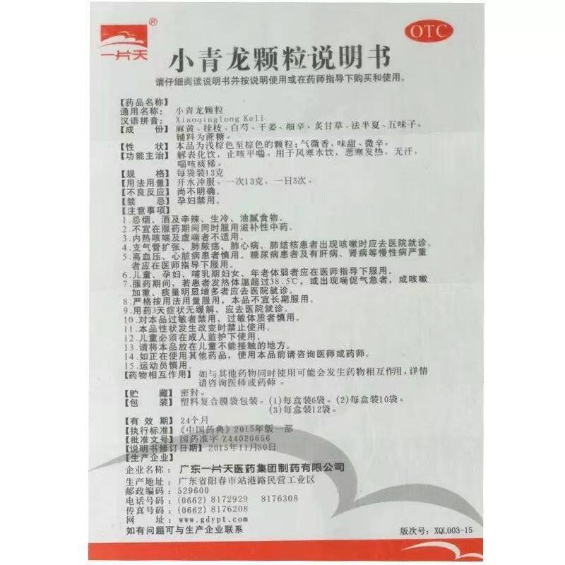 【一片天】小青龙颗粒13g*6袋/盒止咳平喘风寒感冒感冒咳嗽咳痰