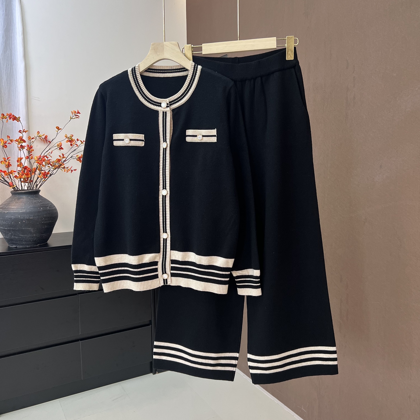 新款秋季妈妈装针织衫上衣裤子两件套时尚小香风女中老年开衫毛衣