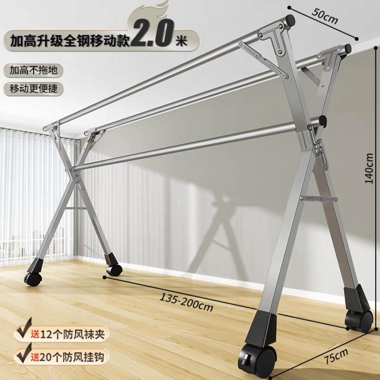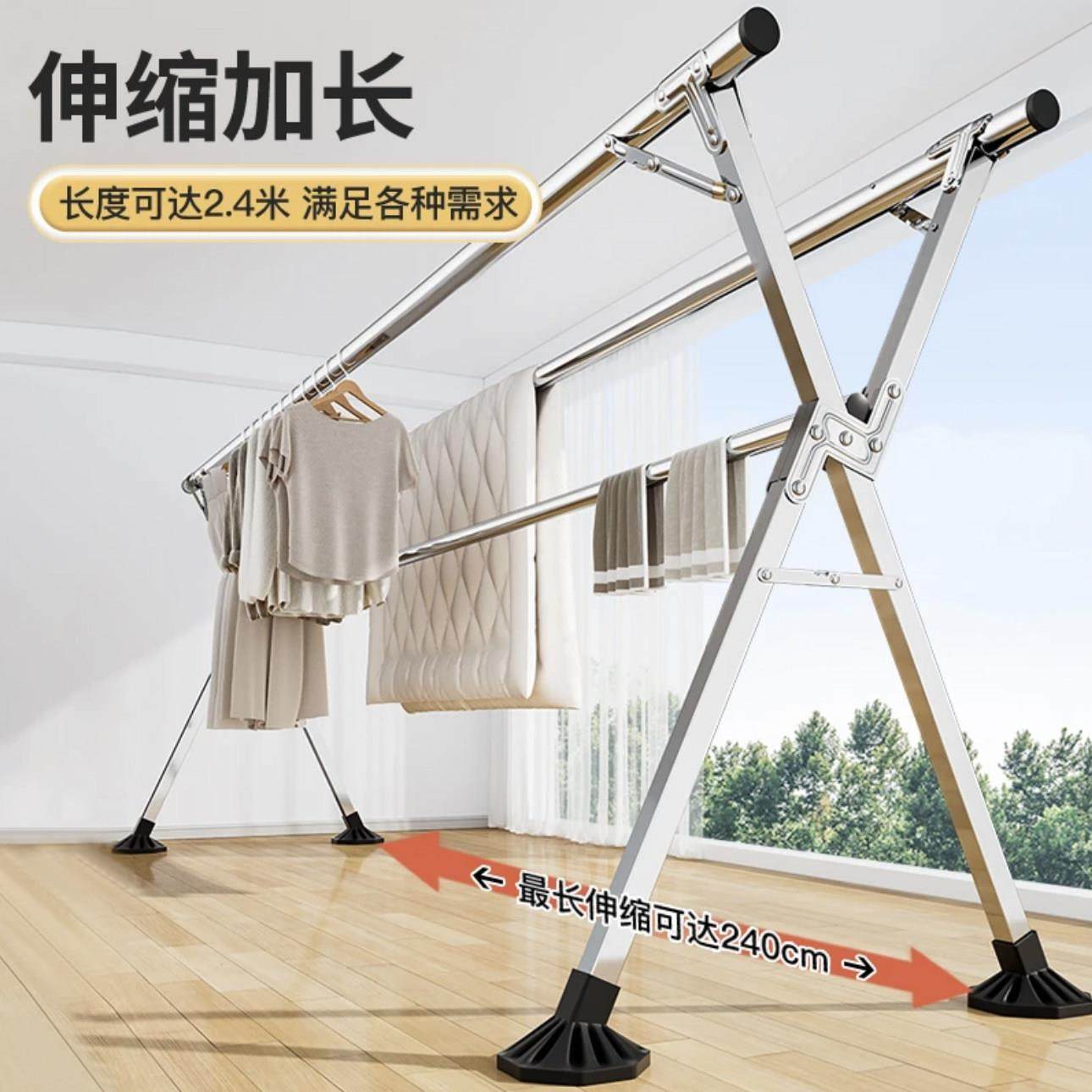 晾衣架神落地折叠室缩用内家阳台卧室不锈钢室外凉伸WL-92810杆式