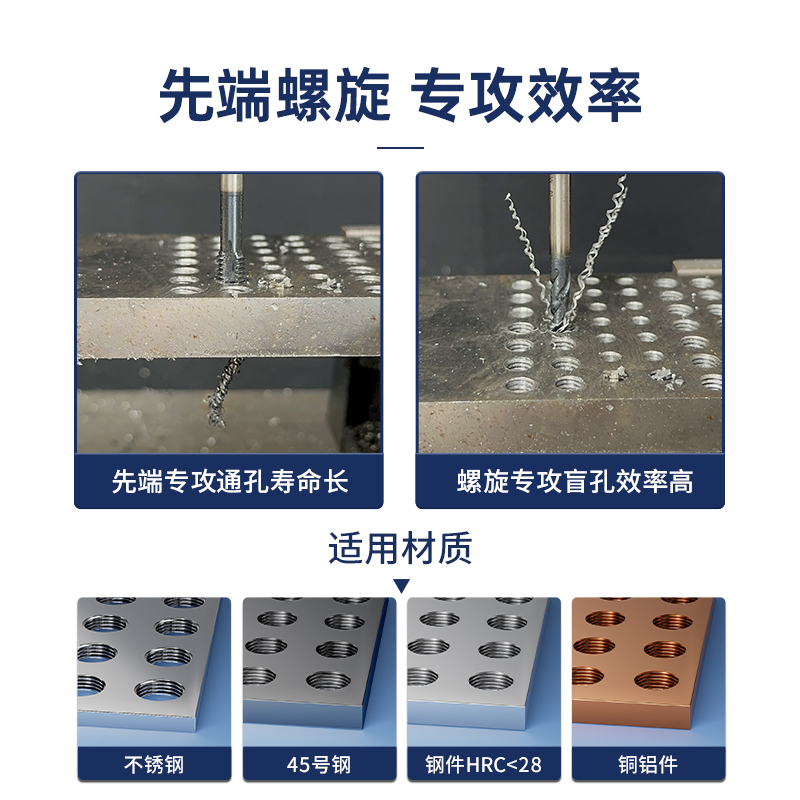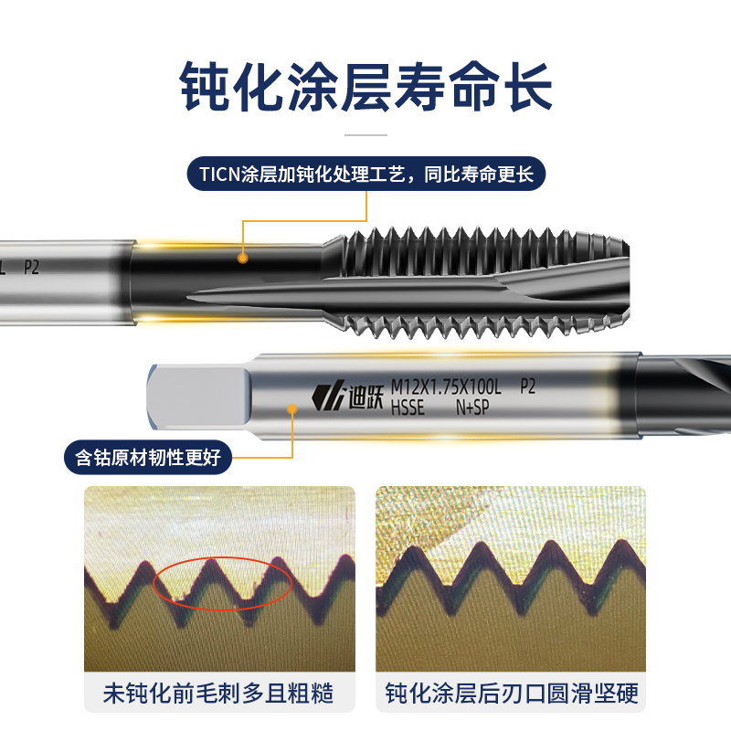 迪跃含钴加长丝锥 先端螺旋丝攻 机用不锈钢加长杆 m3m4m5m6m8m10