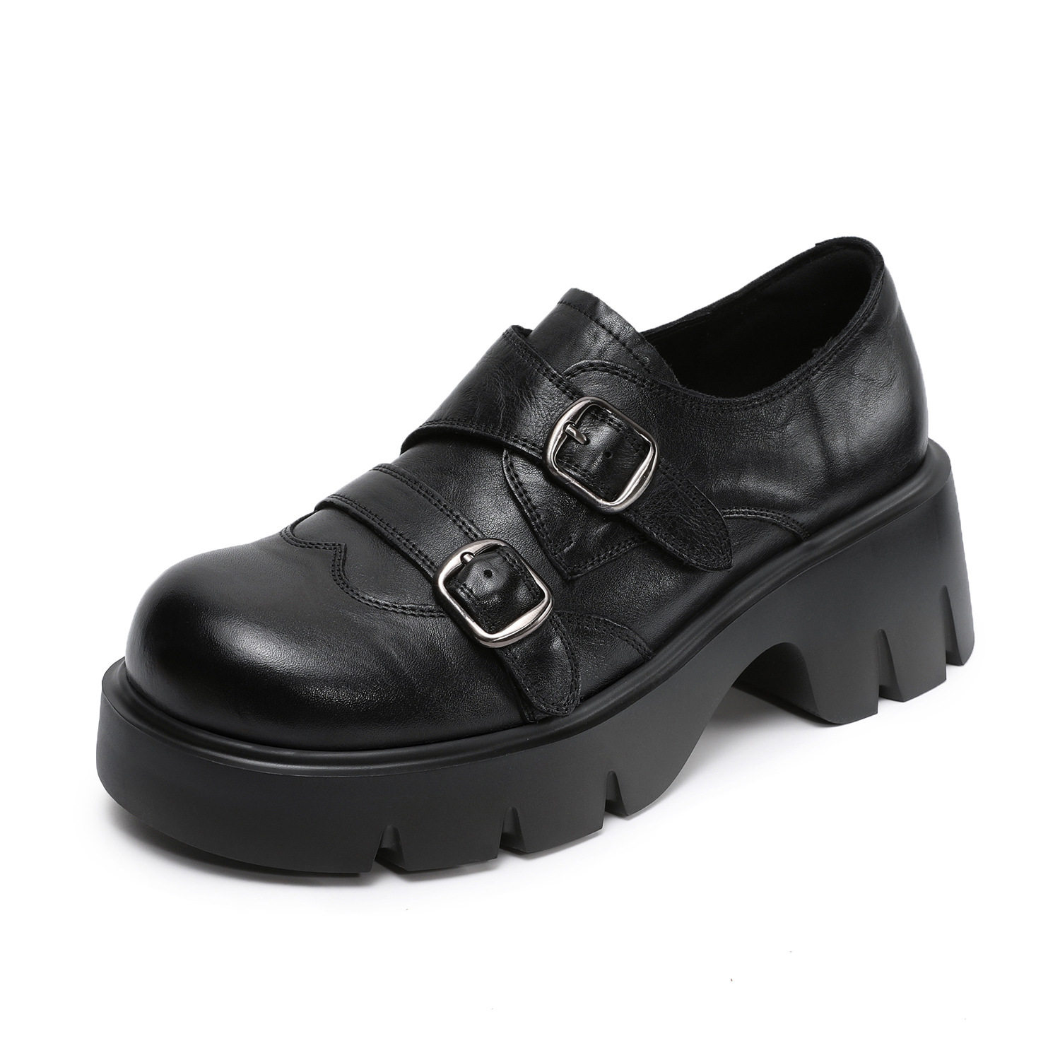 复古圆头皮带扣小皮鞋女26春新款真皮厚底英伦风百搭乐福单鞋