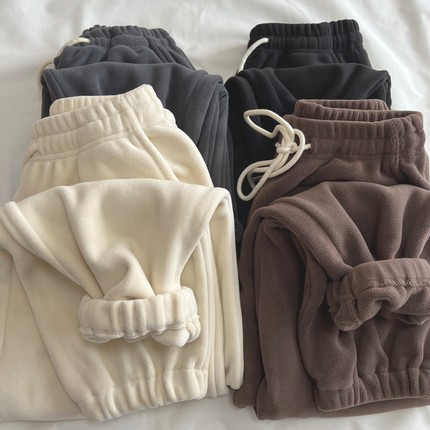 巨暖!冬季软糯双面澳粒绒加绒卫裤宽松百搭小脚哈伦裤女 九分