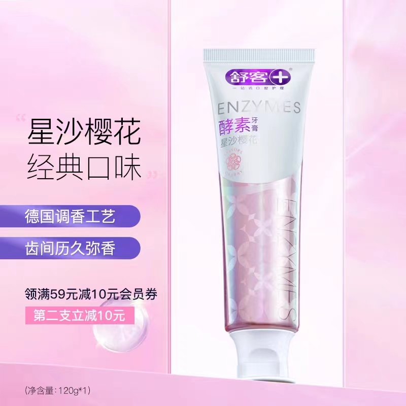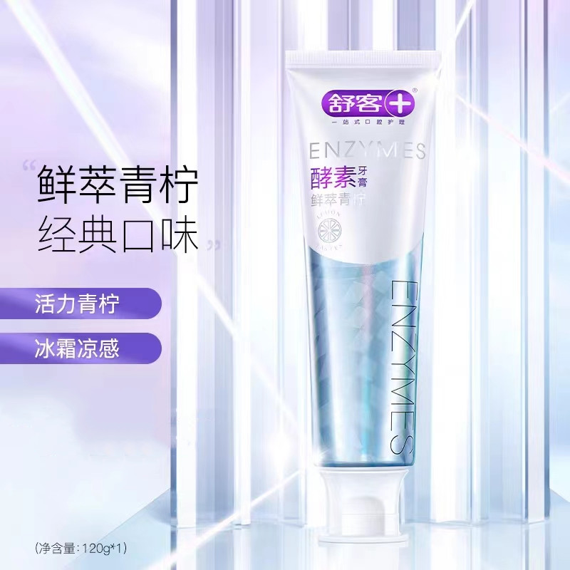 舒客舒克酵素牙膏牙渍清新口气牙齿青柠樱花清洁口腔家庭含氟正品