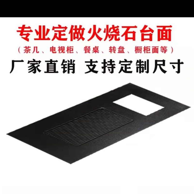 火烧石台面定制茶几电视柜餐桌面板转盘功夫茶台天然大理石台面