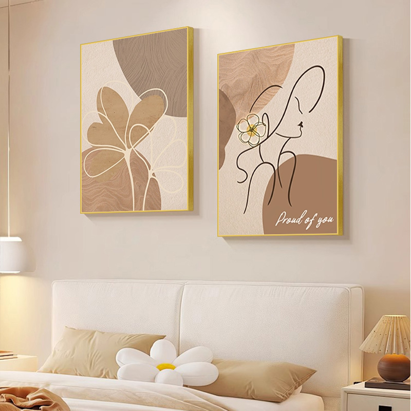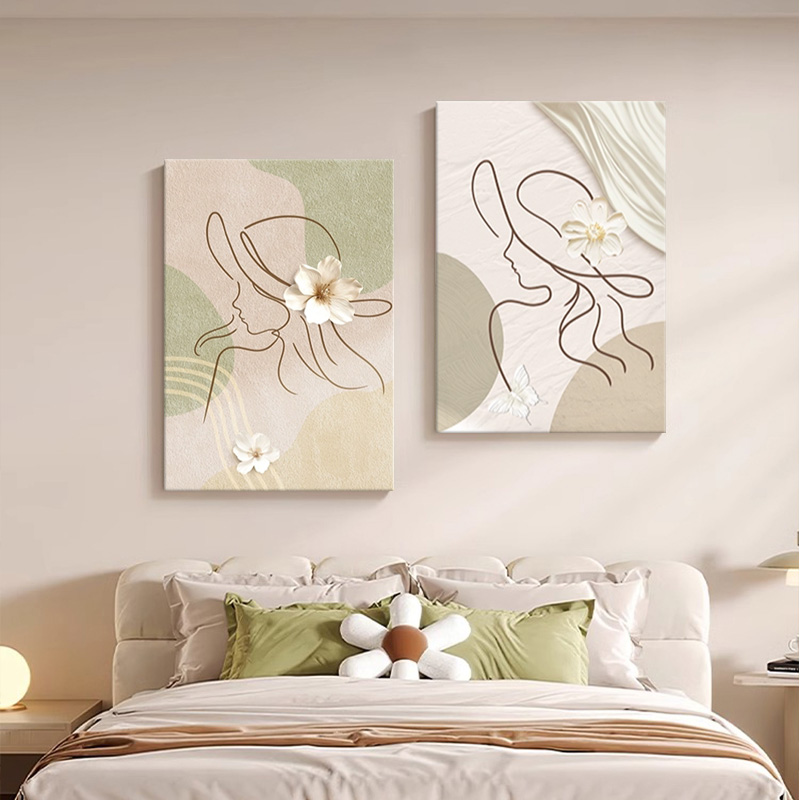 奶油风抽象线条人物卧室装饰画