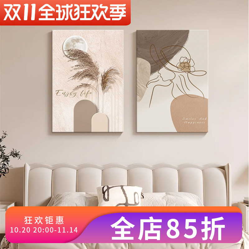 奶油风卧室床头挂画抽象主卧房间装饰画简约高级感组合画餐厅壁画
