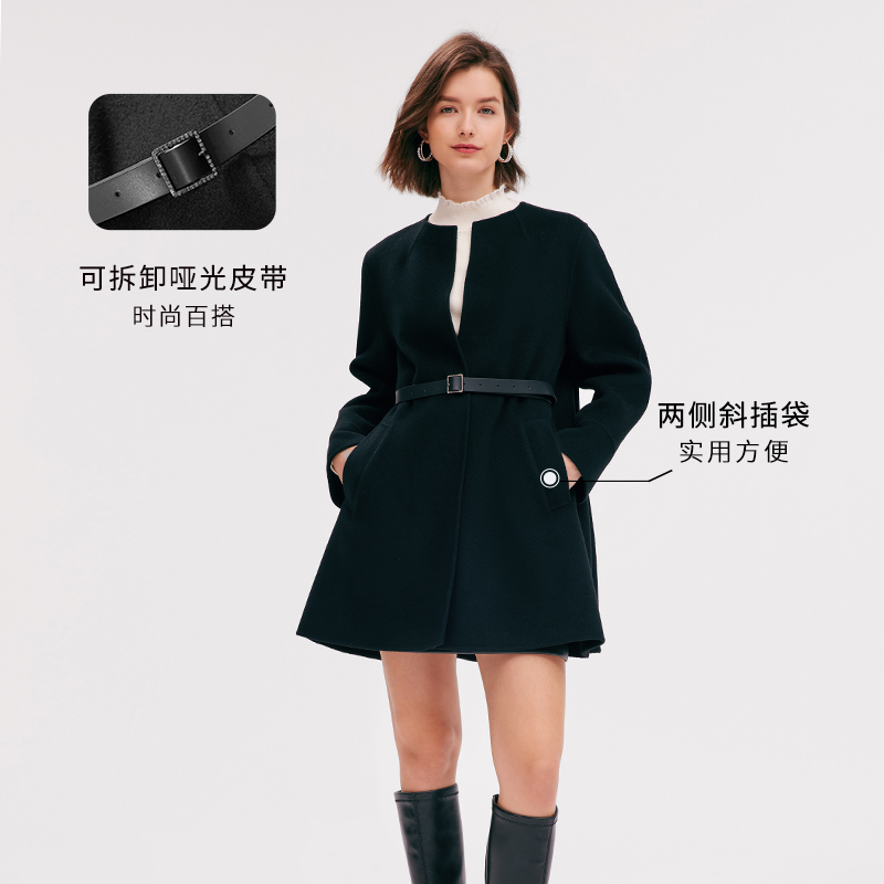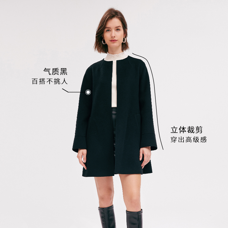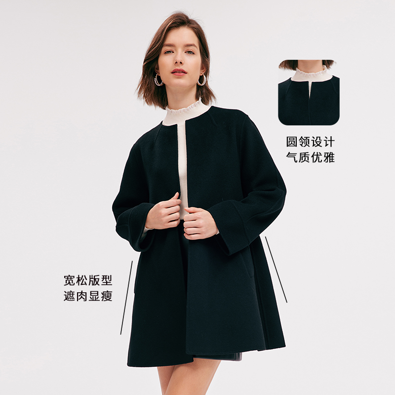 歌莉娅冬季中长款双面呢羊毛外套
