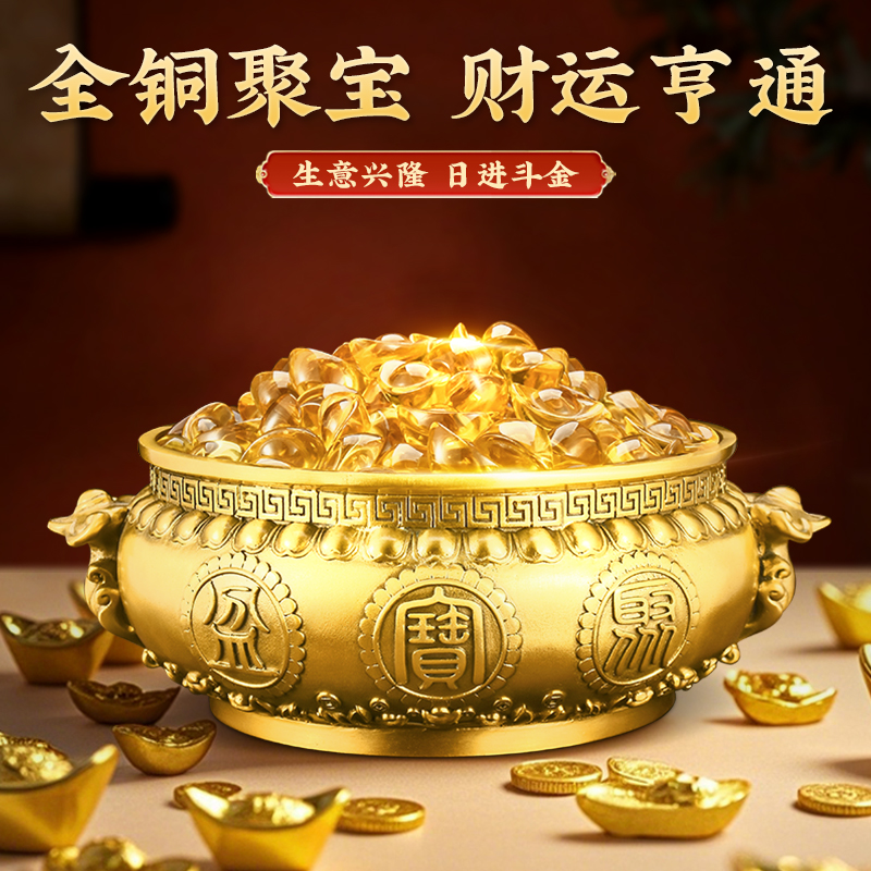 聚宝盆摆件招财聚财纯铜家用存钱罐黄铜米缸客厅店铺办公室装饰品