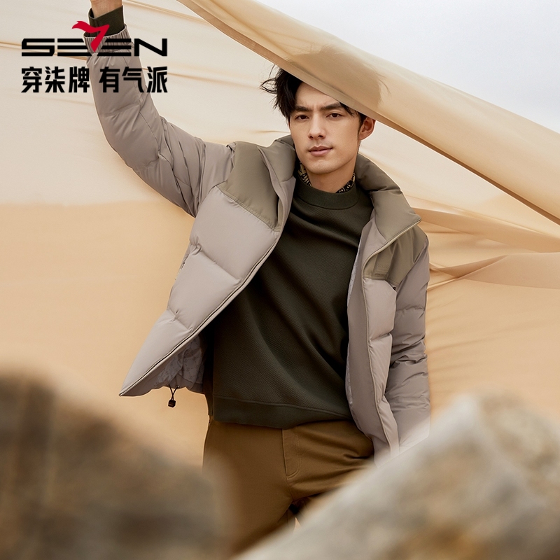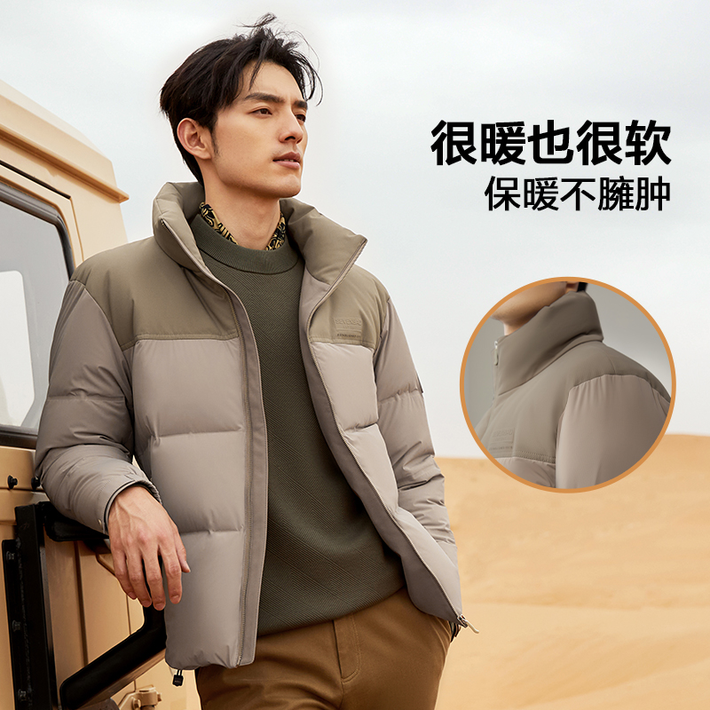 【拒水鸭绒】柒牌男装羽绒服男冬季新款时尚青年休闲立领外套