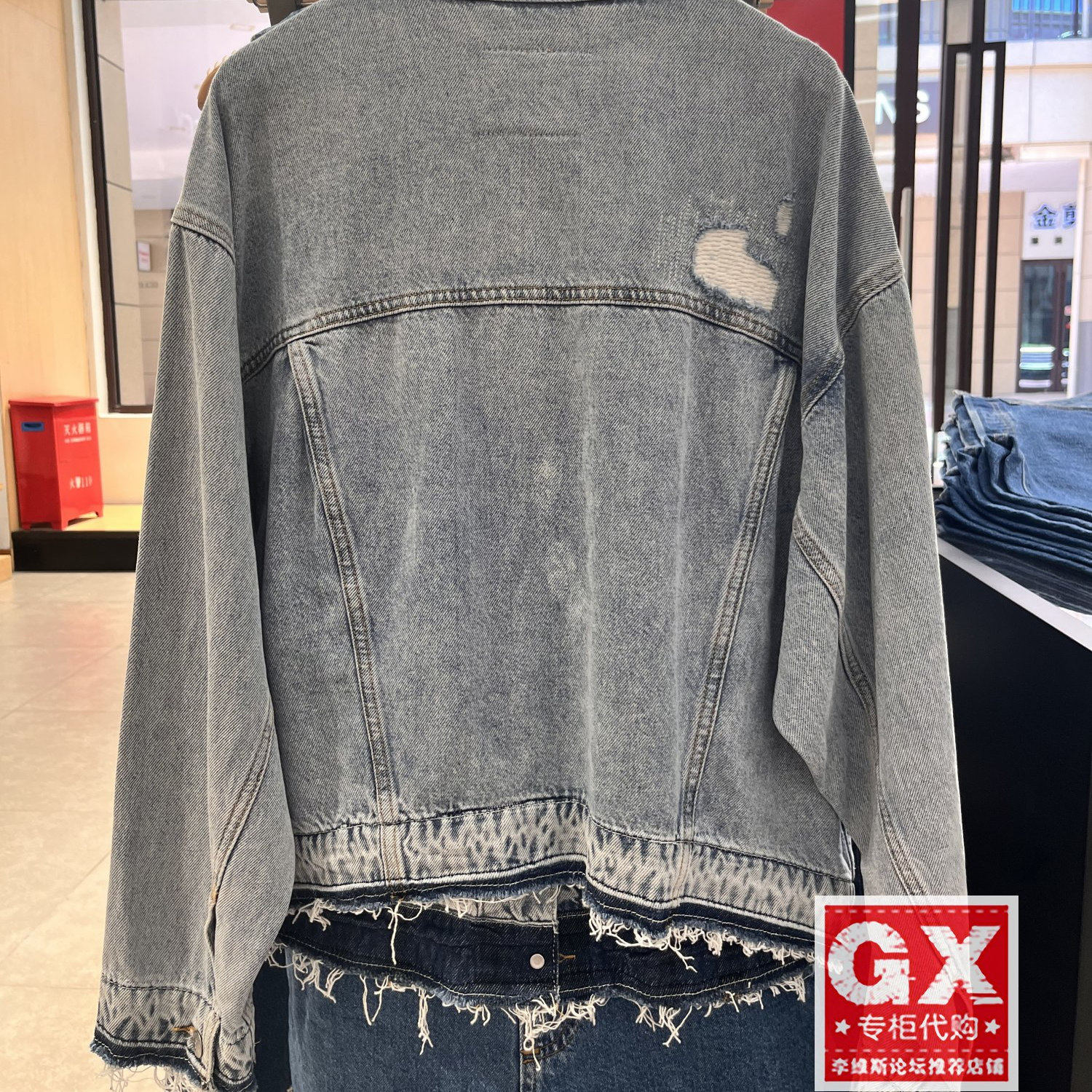专柜正品Levis李维斯女士破洞浅色机车圆领牛仔外套001C2-0000