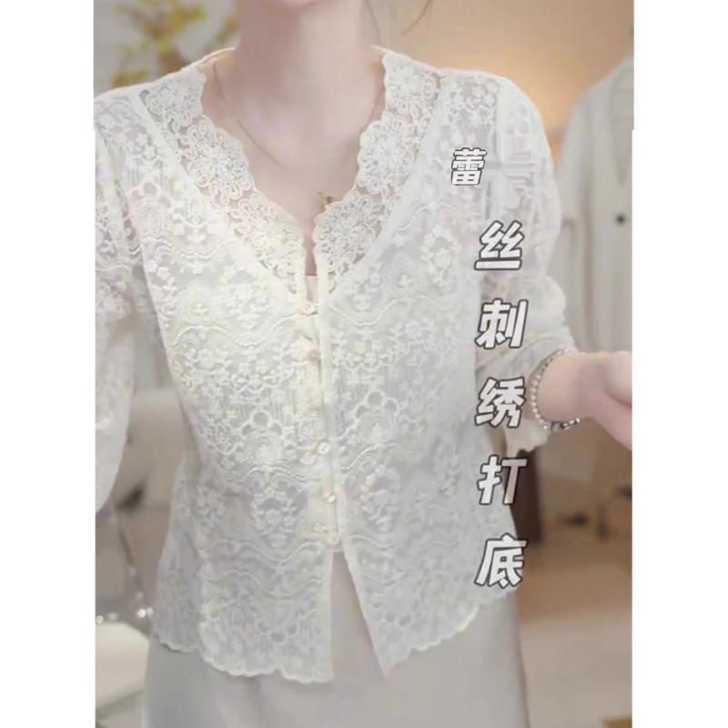 加绒蕾丝衫上衣女秋冬新款叠穿内搭打底衫花边v领镂空喇叭袖小衫