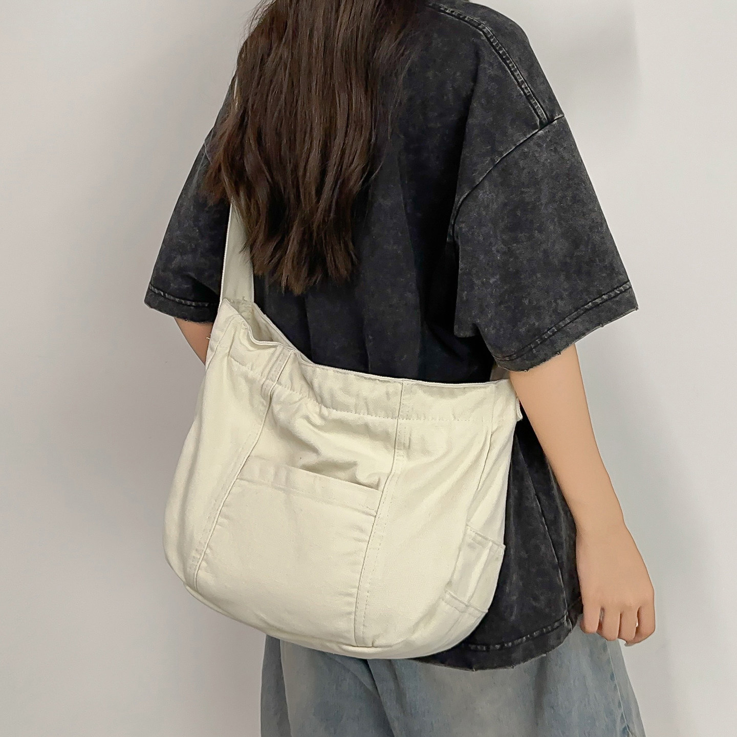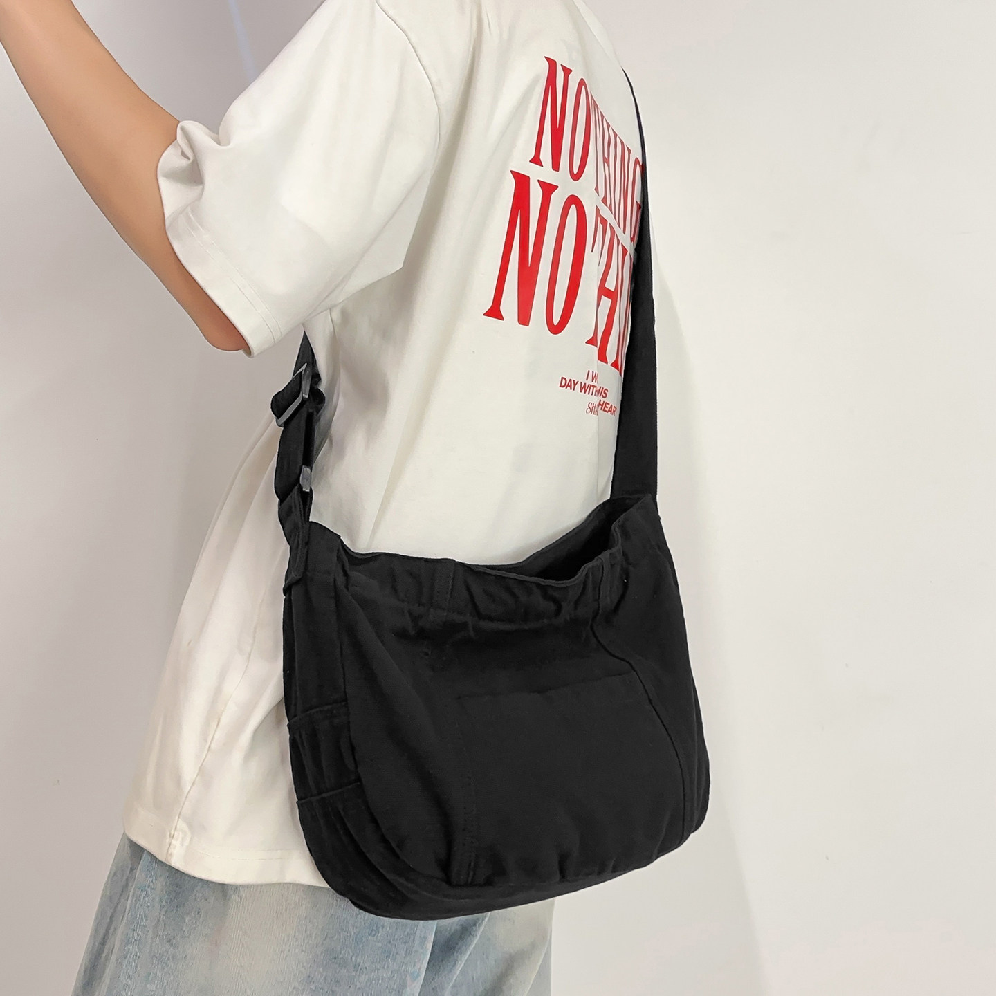 日系休闲斜挎包男士单肩包大容量初中高中学生简约帆布包通勤包女