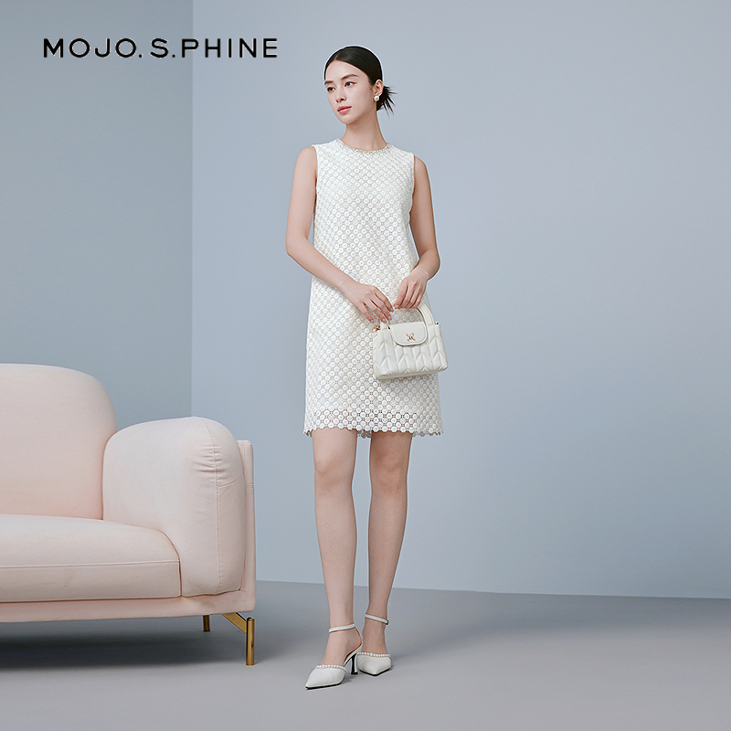 MOJO莫佐高端镂空刺绣蕾丝连衣裙2025年新款无袖时尚长裙朗姿集团