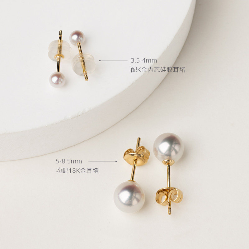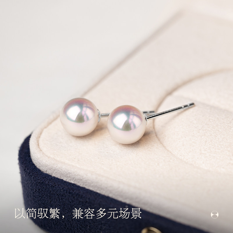 HELAS赫拉官方Akoya海水珍珠耳钉18K白金极简通勤耳饰情人节礼物